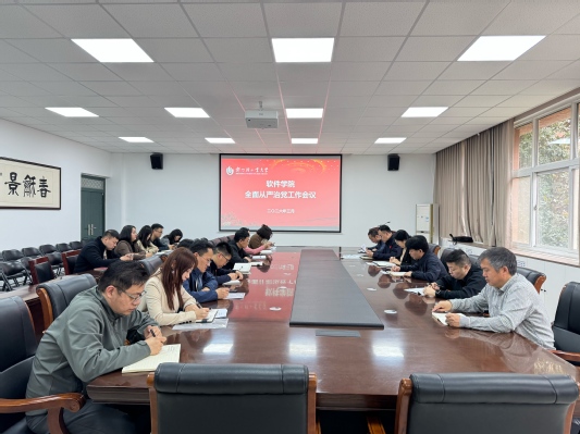 3月26日下午,软件学院在软件楼210会议室召开全面从严治党工作会议。学院领导班子成员、各党支部书记和科级干部参加会议。会议由学院党委书记李玲主持。