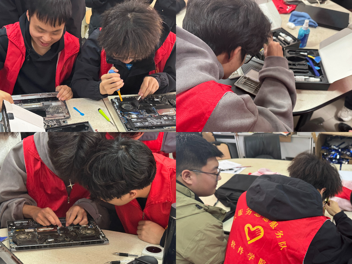 本次义务维修活动涵盖电脑系统重装、笔记本清灰、系统优化、硬件加固及磁盘扩容等多项服务。现场志愿者分工协作,详细记录故障现象,逐一排查问题,高效解决了同学们的各类电脑难题,获得一致好评。听到同学们的认可,志愿者们也很高兴,他们充分利用所学的专业知识为同学们提供了切实的帮助,真正做到学以致用,服务同学。