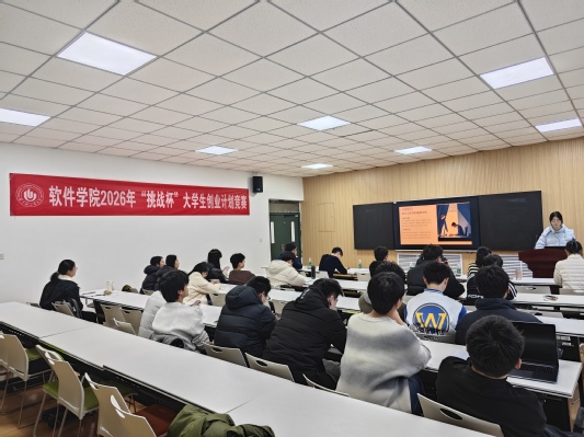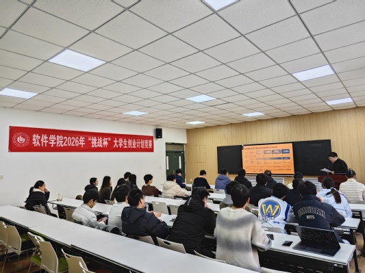 为提高大学生创新创业兴趣,培养学子动手实践能力,遴选校赛优秀参赛作品,1月8日下午,软件学院在软件楼112室举办2026年“挑战杯”大学生创业计划竞赛学院选拔赛。